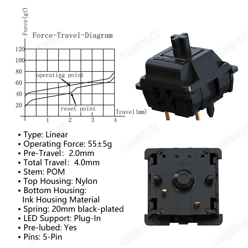 Gateron new oil king 2.0 switch 5pin Pre lubed linear switches 55gf mechanical keyboard switch accessories DIY oil black